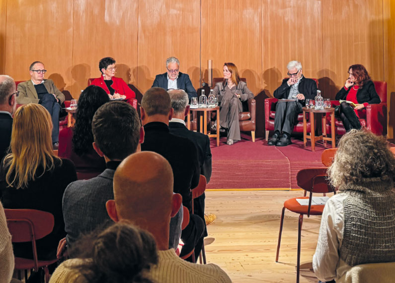 Im Anschluss an den Vortrag von Florence Gaub moderierte Prof. Harald Pechlaner, Leiter des Centers for Advanced Studies von Eurac Research in Bozen und Professor an der Katholischen Universität Eichstätt-Ingolstadt, eine interdisziplinäre Diskussion mit Ulrich Ladurner, Florence Gaub, Brigitte Foppa (Landtagsabgeordnete der Grünen in Südtirol), Prof. Martin Zagler (Wirtschaftsuniversität Wien und Universität des östlichen Piemont) und Claudia Plaikner (Vorsitzende des Heimatverbands) für die rund 90 anwesenden Gäste.