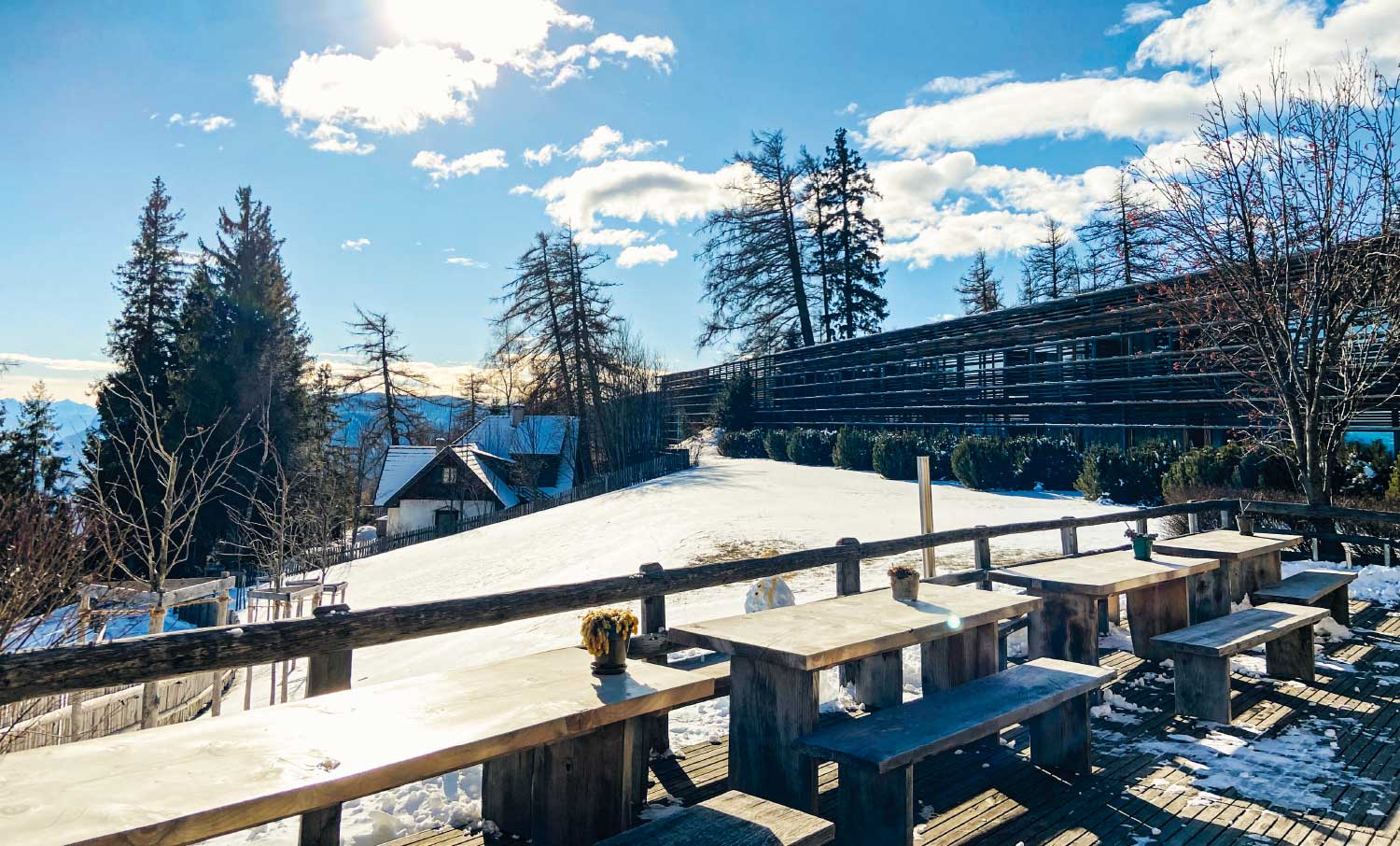 Sensus findet seit 2012 auf dem Vigiljoch im Vigilius Mountain Resort statt. Das 5-Sterne-Hotel in der Nähe von Meran in Südtirol liegt auf 1500 m Höhe und ist nur mit der Seilbahn erreichbar. Die meisten der rund 40 Zimmer bieten einen weiten Blick – bei klarem Wetter deutlich über die Dolomiten hinaus. Ein Ort der Ruhe, der Stille und der Natur, in die sich das nachhaltig ausgerichtete Haus einfügt. Das Vigilius Mountain Resort entstand Anfang der 2000er-Jahre auf Initiative von Ulrich Ladurner gemeinsam mit dem Architekten Matteo Thun. Eine Stilikone wurde ins Leben gerufen, die noch immer Vorbild ist für eine neue Art des ökologischen Luxus. Heute wird das Haus von Ingrid Ladurner geführt.